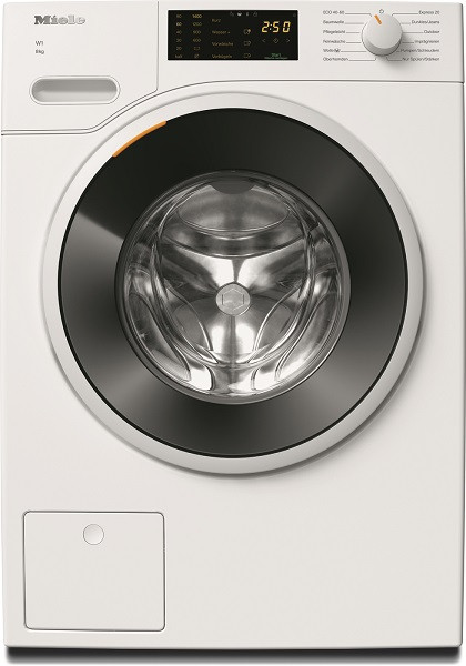 WWB200WCS 8kg, W1 White Edition, Frontlader, max. Schleuderdrehzahl: 1400, Grundfarbe lotosweiß - Türfarbe obsidianschwarz mit weißem Ring, Drehwahlschalter, Schontrommel, Startvorwahl, Energieeffizienzklasse A (48 kWh für 100 Betriebszyklen), Schleudereffizienzklasse B, Schalldruck 72 dB, ProfiEco Motor, Watercontrol-System, HxBxT 850 x 596 x 636, 80 kg