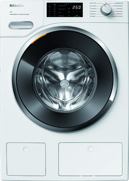 DirectSensor Display, Startvorwahl bis zu 24 Std., Programmablaufanzeige, Restzeitanzeige, Summer, AddLoad (Nachlegen nach Programmstart), PowerWash, TwinDos, CapDosing, SteamCare, Mengenautomatik, Schaumregulierung, Wassermengenzähler, Optionen: Kurz, Vorbügeln mit Dampf; Niedrigtemperaturwaschen "kalt" und "20°C", Waschprogramme: QuickPowerWash, Baumwolle, Baumwolle mit Vorwäsche, Pflegeleicht, Feinwäsche, Oberhemden, Wolle (Handwäsche), Express 20, Auffrischen (Dampf)Pumpen/Schleudern, ECO 40-60; AutoClean Einspülkasten, Waterproof-System, Kindersicherung, PIN-Code Verriegelung, optische Schnittstelle, Miele@home, Tür Obsidianschwarz mit Chromring, ProfiEco Motor, säulenfähig