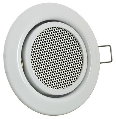 Einbaulautsprecher inkl. Halter, weiß - Zur Decken- oder Wandmontage im Innenbereich (IP20) - Geeignet für alle Kameras S1x und V1x - Direktanschluss via Zweidraht ohne Zusatznetzteil - Innenring mit Lautsprecher um 20° schwenkbar - Temperaturbereich: 0 bis 60 °C - Schutzart: IP20 - Impedanz: 8 Ohm - Material Lautsprecher: Metall mit Lochblechabdeckung - Anschlussart: 2-adrige Leitung, Lüsterklemme inklusive