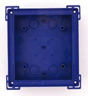 Passend für: 1 Modul, Außenbereich - Das blaue Gehäuse wird fest mit dem Untergrund bzw. Mauerwerk verbunden. Es kann auch zur einfachen Montage in Hohlräumen genutzt werden: Öffnung bohren, Gehäuse einsetzen und festschrauben – die automatisch herausschwenkenden Halteflügel fixieren das Gehäuse sicher, während die Kunststoffstege am Gehäuserand das Durchrutschen in den Hohlraum verhindern. - Benötigte Einbauöffnung: 117 x 129 mm (Breite x Höhe) - Zulässige Wanddicke bei Hohlraummontage: 7 bis 27 mm