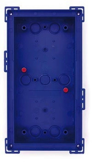 Passend für: 2 Module, Außenbereich - Das blaue Gehäuse wird fest mit dem Untergrund bzw. Mauerwerk verbunden. Es kann auch zur einfachen Montage in Hohlräumen genutzt werden: Öffnung bohren, Gehäuse einsetzen und festschrauben – die automatisch herausschwenkenden Halteflügel fixieren das Gehäuse sicher, während die Kunststoffstege am Gehäuserand das Durchrutschen in den Hohlraum verhindern. - Benötigte Einbauöffnung: 117 x 218 mm (Breite x Höhe) - Zulässige Wanddicke bei Hohlraummontage: 7 bis 27 mm