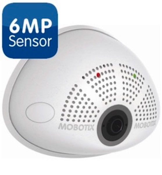 Hemisphärische IP-Indoorkamera zur Wandmontage - 6 Megapixel Moonlight-Sensor, S/W (Nacht) - HD-Premium Fisheye-Objektiv B016 (Brennweite 1,6 mm, f/2.0, 180° x 180°) - Max. Bildgröße: 6MP (3072 x 2048) - IP30, 0 bis 40 °C - 4 GB microSD - Temperatursensor, Helligkeitssensor, Erschütterungssensor, MxActivitySensor, MxAnalytics - Ethernet-Patchkabel 0,5 m/1,6 ft - Schnittstellen: Ethernet 10/100 (RJ45), USB, Steckplatz für IO-Modul MX-OPT-IO3-INT - Farbe: Weiß