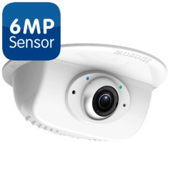 IP-Indoorkamera zur Deckenmontage - Manuell einstellbarer Objektiv-Neigewinkel -5° bis -45° - 6 Megapixel Moonlight-Sensor, Farbe (Tag) - Standard-Objektiv B079 (Brennweite 7,9 mm, f/1.8, 45° x 34°) - Max. Bildgröße: 6MP (3072 x 2048) - IP20, 0 bis 40 °C - 4 GB microSD - Temperatursensor, Helligkeitssensor, Erschütterungssensor, MxActivitySensor, MxAnalytics - Ethernet-Patchkabel 0,5 m/1,6 ft - Schnittstellen: Ethernet 10/100 (RJ45), USB, Steckplatz für IO-Modul MX-OPT-IO3-INT - Farbe: Weiß