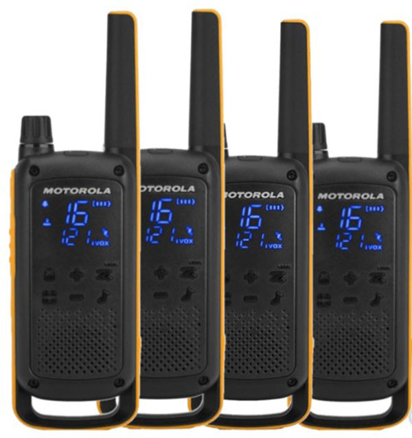 Quad Pack. Das Motorola TALKABOUT T82 Extreme ist ein robuster Funkbegleiter für Abenteuer. Mit IPX4-Wetterschutz funktioniert es auch bei schlechtem Wetter. Ein verstecktes Display und die Easy Pairing-Funktion erleichtern die Bedienung, während eine integrierte LED-Taschenlampe Nachteinsätze unterstützt. Mit einer Reichweite von bis zu 10 km und umfangreichem Zubehör sorgt das Gerät für zuverlässige Kommunikation - ideal für anspruchsvolle Wanderungen und Gipfeltouren.Highlights: 4 Funkgeräte Motorola Talkabout T82 Extreme, Komplettset mit Tragekoffer, Freisprechkits und weiterem Zubehör, iVOX/VOX-Funktion: Automatische Sprachaktivierung, Integrierte LED-Taschenlampe und Leuchtdisplay, IPX4-Norm: Spritzwassergeschützt für Outdoor Nutzung.