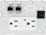 Modlink MSDD Kombieinsatz 2-fach USA 2xNEMA 5-15 GFCI+2xRJ45 Bu/Bu + 1x3A Sicherung mit Berührschutz