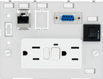 Modlink MSDD Kombieinsatz 2-fach USA 2xNEMA 5-15 GFCI+1xRJ45 Bu/Bu +1xSUB-D9 Bu/St + 1x3A Sicherung mit Berührschutz