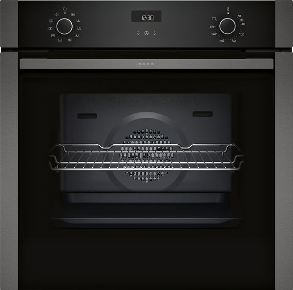 Backofentyp und Heizart Backofen mit 7 Beheizungsarten: Circo Therm®, Ober-/Unterhitze, Thermogrill, Großflächengrill, Pizzastufe, Unterhitze, Circo Therm® sanft Temperaturregelung von 50 °C - 275 °C Garraumvolumen: 71 l Zubehörträger / Auszugssystem: Einschubebenen: 4 Auszug nachrüstbar Design Graphite-Grey Edition Voll versenkbare Bedienknebel, Drehwähler, rund Garraum: Email anthrazit Reinigung Easy Clean (Reinigungshilfe): Leichte Verschmutzungen entfernen mit Wasserdampf und Spülmittel. Vollglas-Innentür Komfort LCD Display (weiß), mechanische Steuerung Elektronik-Uhr Optische Aufheizkontrolle Autostart Klapptür Profilgriff Klapptür mit Soft Close und Soft Opening: Sanftes Öffnen und Schließen der Backofentür. Schnellaufheizung: Schnell zur Zieltemperatur ohne höheren Energieverbrauch Halogenleuchte Kühlgebläse Zubehör emailliertes Backblech Kombirost 1 x Universalpfanne Umwelt und Sicherheit Sehr geringe Fenstertemperatur 3-fache Türverglasung Individuell einstellbare Kindersicherung Technische Info Länge des Anschlusskabels: 120 cm Nennspannung: 220 - 240 V Gesamtanschlusswert Elektro: 3.4 kW Energieeffizienzklasse (gem. EU Nr. 65/2014): A+(auf einer Energieeffizienzklassen-Skala von A+++ bis D) Energieverbrauch pro Zyklus im konventionellen Modus: 0.94 kWh Energieverbrauch pro Zyklus im Umluft-Modus: 0.69 kWh Zahl der Garräume: 1 Wärmequelle: elektrisch Innenraumvolumen: 71 l Maße Gerätemaße (HxBxT): 595 x 594 x 548mm Nischenmaße (HxBxT): 595 mm x 560 mm x 550 mm „Maße und Einbauhinweise zu diesem Gerät gemäß technischer Zeichnung beachten“
