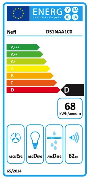 Energieeffizienzklasse: D (auf einer Energieeffizienzklassen-Skala von A+++ bis D) Durchschnittlicher Energieverbrauch: 67.7 kWh/Jahr* Lüfter-Effizienzklasse: E* Beleuchtungs-Effizienzklasse: D* Fettfilter-Effizienzklasse: D* Geräusch min./max. Normalstufe: 46/62 dB Wahlweise Abluft- oder Umluftbetrieb Für Umluftbetrieb wird ein Standard Umluftset (Sonderzubehör) benötigt Zur Montage in einem Küchenunterschrank 53 cm Lüfterbaustein, Anthrazit 1 Motor Dunstabzüge für 3 Leistungsstufen 3 Leistungsstufen Metallfettfilter, spülmaschinengeeignet Arbeitsplatzbeleuchtung mit 2 x LED 3W E14 Beleuchtungsstärke: 78 lux Farbtemperatur: 2700 K Abluftleistung nach EN 61591: max. 302 m³/h Geräuschwerte nach EN 60704-3 und EN 60704-2-13 max. Normalstufe Abluftbetrieb: 62 dB(A) re 1 pW (48 dB(A) re 20 µPa Schalldruck) Max. Förderleistung: 302 m3/h Gerätemaße (HxBxT): 208 x 534 x 300 mm Einbaumaße: Breite: 49 cm, Tiefe: 26 cm Abluftstutzen ø 120 mm Länge Anschlusskabel: 1.5 m mit Stecker Gesamtanschlusswert: 121 W Lieferung mit Rückstauklappe