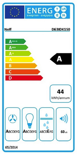 Design: Schrägessen-Design Wandmontage Glasscheibe: schwarz bedruckt Wahlweise Abluft- oder Umluftbetrieb Für Umluftbetrieb wird ein Standard Umluftset (Sonderzubehör) benötigt Wichtigste Eigenschaften: Kondensatormotor Arbeitsplatzbeleuchtung mit 2 x 3 W Farbtemperatur: 4000 K Beleuchtungsstärke: 127 lux 1 Metallfettfilter Komfortfunktionen: Elektronische Steuerung über TouchControl, hintergrundbeleuchtet 3 Leistungsstufen und 1 Intensivstufe Automatisches Zurücksetzen von Intensiv- auf Normalstufe nach 5 Min. Sättigungsanzeige für Fett - und Geruchsfilter Komfort bei der Reinigung: Die Oberflächen und Materialien sind glatt und leicht zu reinigen. Metallfettfilter, spülmaschinengeeignet Leistung Abluft: Gemäß EN 61591 und EN/IEC 60704-2-13 kann das Gerät im Abluftbetrieb folgende Werte erreichen: Leistungsstufe 1: Lüfterleistung 220 m3/h; Geräuschwert 46 dB(A) re1pW Leistungsstufe 2: Lüfterleistung 315 m3/h; Geräuschwert 53 dB (A) re1pW Leistungsstufe 3: Lüfterleistung 430 m3/h; Geräuschwert 60 dB (A) re1pW Intensivstufe 1: Lüfterleistung 550 m3/h; Geräuschwert 65 dB (A) re1pW Energieeffizienzklasse: A (auf einer Energieeffizienzklassen-Skala von A+++ bis D) Durchschnittlicher Energieverbrauch: 43.8 kWh/Jahr* Lüfter-Effizienzklasse: A* Beleuchtungs-Effizienzklasse: A* Fettfilter-Effizienzklasse: E* Leistung Umluft: Gemäß EN 61591 und EN/IEC 60704-2-13 kann Ihr Gerät im Umluftbetrieb mit dem standardmäßigen Umluftset (als optionales Zubehör erhältlich) folgende Werte erreichen: Leistungsstufe 1: Lüfterleistung 215 m3/h; Geräuschwert 51 dB(A) re1pW Leistungsstufe 2: Lüfterleistung 300 m3/h; Geräuschwert 61 dB(A) re1pW Leistungsstufe 3: Lüfterleistung 445 m3/h ; Geräuschwert 69 dB(A) re1pW Intensivstufe 1: Lüfterleistung 550 m3/h; Geräuschwert 72 dB (A) re1pW Technische Daten und Nachhaltigkeit: Angaben zum Verbrauch: Gesamtanschlusswert: 223 W Spannung: 220 - 240 V Informationen zur Planung und Installation: Gerätemaße Abluft (HxBxT): 690-900 x 790 x 325 mm Gerätemaße Umluft (HxBxT): 720-975 x 790 x 325 mm Abluftausgang: Ø 150 mm Länge Anschlusskabel: 1.5 m mit Stecker Lieferung mit Rückstauklappe