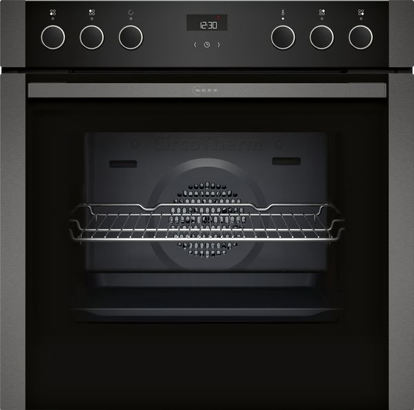 Backofentyp und Heizart Einbauherd mit 7 Beheizungsarten: Circo Therm®, Ober-/Unterhitze, Thermogrill, Großflächengrill, Pizzastufe, Unterhitze, Circo Therm® sanft Temperaturregelung von 50 °C - 275 °C Garraumvolumen: 71 l Zubehörträger / Auszugssystem: Einschubebenen: 4 Auszug nachrüstbar Design Graphite-Grey Edition Drehwähler, rund, Voll versenkbare Bedienknebel Garraum: Email anthrazit Reinigung Easy Clean (Reinigungshilfe): Leichte Verschmutzungen entfernen mit Wasserdampf und Spülmittel. Vollglas-Innentür Komfort LCD Display (weiß), mechanische Steuerung Elektronik-Uhr Optische Aufheizkontrolle Autostart Klapptür Profilgriff Klapptür mit Soft Close und Soft Opening: Sanftes Öffnen und Schließen der Backofentür. Schnellaufheizung: Schnell zur Zieltemperatur ohne höheren Energieverbrauch Halogenleuchte Kühlgebläse Zubehör Kombirost 1 x Universalpfanne Umwelt und Sicherheit Sehr geringe Fenstertemperatur 3-fache Türverglasung Individuell einstellbare Kindersicherung Technische Info ER1x4 ZZ in Herd (1+3) Nennspannung: 220 - 240 V Gesamtanschlusswert Elektro: 11.2 kW Energieeffizienzklasse (gem. EU Nr. 65/2014): A+(auf einer Energieeffizienzklassen-Skala von A+++ bis D) Energieverbrauch pro Zyklus im konventionellen Modus: 0.94 kWh Energieverbrauch pro Zyklus im Umluft-Modus: 0.69 kWh Zahl der Garräume: 1 Wärmequelle: elektrisch Innenraumvolumen: 71 l Maße Gerätemaße (HxBxT): 595 x 594 x 548mm Nischenmaße (HxBxT): 604 mm x 560 mm x 550 mm „Maße und Einbauhinweise zu diesem Gerät gemäß technischer Zeichnung beachten“