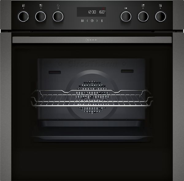 Backofentyp und Heizart Einbauherd mit 8 Beheizungsarten: Circo Therm®, Ober-/Unterhitze, Thermogrill, Großflächengrill, Pizzastufe, Brotbackstufe 180 °C - 220 °C, Unterhitze, Circo Therm® sanft Temperaturregelung von 30 °C - 275 °C Garraumvolumen: 71 l Zubehörträger / Auszugssystem: Einschubebenen: 4 Auszug nachrüstbar Design Graphite-Grey Edition Drehwähler, rund, Voll versenkbare Bedienknebel Garraum: Email anthrazit Reinigung Pyrolytische Selbstreinigung Easy Clean (Reinigungshilfe): Leichte Verschmutzungen entfernen mit Wasserdampf und Spülmittel. Vollglas-Innentür Komfort LCD Display (weiß), elektronische Steuerung Elektronik-Uhr Optische Aufheizkontrolle Temperaturvorschlag Autostart Ist-Temperaturanzeige Klapptür Profilgriff Klapptür mit Soft Close und Soft Opening: Sanftes Öffnen und Schließen der Backofentür. Schnellaufheizung: Schnell zur Zieltemperatur ohne höheren Energieverbrauch Backofenbeleuchtung abschaltbar, Halogenleuchte Kühlgebläse Infotaste Zubehör Kombirost 1 x Universalpfanne Umwelt und Sicherheit Sehr geringe Fenstertemperatur Niedrige Türtemperatur während der pyrolytischen Reinigung 4-fache Türverglasung Individuell einstellbare Kindersicherung Türverriegelung bei Pyrolysebetrieb Automatische Sicherheitsabschaltung Restwärmeanzeige Technische Info ER1x4 ZZ in Herd (1+3) Nennspannung: 220 - 240 V Gesamtanschlusswert Elektro: 11.4 kW Energieeffizienzklasse (gem. EU Nr. 65/2014): A+(auf einer Energieeffizienzklassen-Skala von A+++ bis D) Energieverbrauch pro Zyklus im konventionellen Modus: 0.94 kWh Energieverbrauch pro Zyklus im Umluft-Modus: 0.69 kWh Zahl der Garräume: 1 Wärmequelle: elektrisch Innenraumvolumen: 71 l Maße Gerätemaße (HxBxT): 595 x 594 x 548mm Nischenmaße (HxBxT): 604 mm x 560 mm x 550 mm „Maße und Einbauhinweise zu diesem Gerät gemäß technischer Zeichnung beachten“