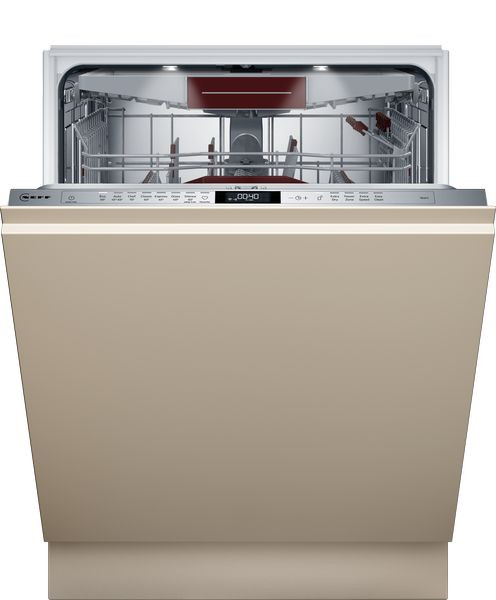 Leistung und Verbrauch Energieeffizienzklasse¹: A Energie² / Wasser³: 54 kWh / 9 Liter Fassungsvermögen: 14 Maßgedecke Programmdauer4: 4:30 (h:min) Geräusch: 42 dB(A) re 1 pW Geräusch-Effizienzklasse: B Geräusch im Silence-Programm: 41 dB(A) re 1 pW Programme und Optionen 8 Programme: Eco 50 °C, Auto 45-65 °C, Chef 70 °C, Classic 60 °C, Schnell 45 °C, Glas 40 °C, Silence 50 °C, Favorit Vorspülen 4 Sonderfunktionen: Fernstart, Extra Shine, Power Zone, Extra Speed EasyClean Add-On Funktion über die Home Connect App: HygienePlus, Silence on Demand Spültechnik und Sensorik Open Dry (Eco Trocknung) mit Wärmetauscher Aquasensor Dosier Assistent EfficientSilentDrive Reiniger-Automatik Selbstreinigendes Sieb mit 3-fach Wellen-Filtersystem Innenbehälter/ Boden: Edelstahl/Edelstahl Korbsysteme Flex 2 Korbsystem mit farbigen verstellbaren Elementen Flex Schublade Höhenverstellbarer Oberkorb mit RackMatic® (3-stufig) Leichtlaufrollen im Oberkorb Komfortrollen im Unterkorb farbige Anti-Rutsch-Beschichtung im Oberkorb Korbstopper (Rack Stopper) gegen ein Überrollen des Unterkorbes Klappbare Tellerhaltereihen im Oberkorb (6x) Klappbare Tellerhaltereihen im Unterkorb (6x) Tassenablage im Oberkorb (2-teilig) Tassenablage im Unterkorb (2-teilig) Antirutschsicherung weinrot für Gläser im Oberkorb Gläseranlagebügel im Unterkorb Anzeige und Bedienung Touch Bedienung Bedienung von oben Bedienblende mit Klartext (englisch) Home Connect-fähig über WLAN Time Light Emotion Light Restzeitanzeige in Minuten Startzeitvorwahl 1-24 Stunden Akustisches Signal bei Programmende Technische Informationen und Zubehör Aqua Stop: eine Neff Garantie bei Wasserschäden - ein Geräteleben lang* Integrierter Glasschutz Salzeinfüllhilfe (Trichter) Inkl. Dampfschutz für die Arbeitsplatte Gerätemaße (H x B x T): 81.5 cm x 59.8 cm x 55.0 cm