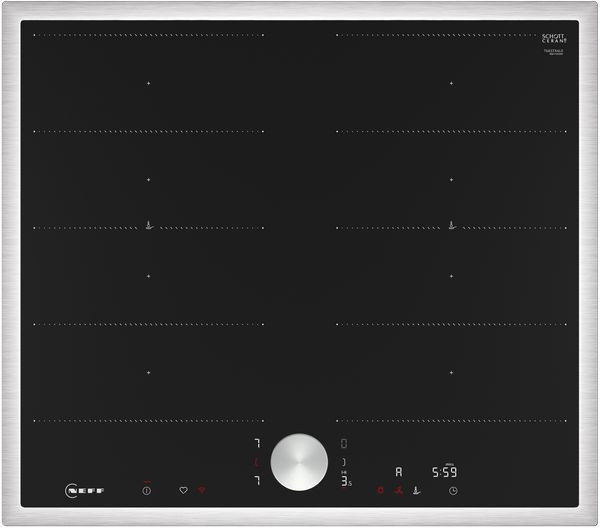 60 cm: Platz für 4 Töpfe oder Pfannen Flexibilität der Kochzonen 2 x Flexzone: Verwenden Sie Kochgeschirr beliebiger Form und Größe innerhalb der 40 cm langen Zone. Kochzone vorne links: 225 mm, 190 mm, 2.2 kW (maximale Leistung 3.7 kW) Kochzone hinten links: 225 mm, 190 mm, 2.2 kW (maximale Leistung 3.7 kW) Kochzone hinten rechts: 225 mm, 190 mm, 2.2 kW (maximale Leistung 3.7 kW) Kochzone vorne rechts: 225 mm, 190 mm, 2.2 kW (maximale Leistung 3.7 kW) Benutzerfreundlichkeit Zweifarbiges Display (weiß/rot): leicht zu erkennen, welche Funktion aktiviert ist. Favourite Taste: Mit einer konfigurierbaren Taste direkt auf Lieblingsfunktionen zugreifen. 17 Leistungsstufen: Stellen Sie die Hitze mit 17 Leistungsstufen (9 Hauptstufen und 8 Zwischenstufen) präzise ein. Warmhalte-Funktion, wählbar über Favourite Taste/Home Connect App (voraussichtliche Verfügbarkeit in Q4/2024 über Software-Update für mit Home Connect verbundene Geräte): Warmhalten von Speisen bei voreingestellter niedriger Leistungsstufe. Switch Off Timer: schaltet die Kochzone am Ende der eingestellten Zeit aus (z. B. für gekochte Eier). Alternativ Wecker: Ein Signal ertönt am Ende der eingestellten Zeit (z. B. beim Pastakochen). Die Lautstärke der Signaltöne kann an die persönlichen Vorlieben und Bedürfnisse angepasst werden. Zeitersparnis und Effizienz Powerstufe für Töpfe: Mit 50 % mehr Leistung z. B. Wasser schneller zum Kochen bringen als auf höchster Leistungsstufe. Powerstufe für Pfannen, wählbar über Favourite Taste/Home Connect App (voraussichtliche Verfügbarkeit in Q4/2024 über Software-Update für mit Home Connect verbundene Geräte): Erhitzt Pfannen schneller als auf höchster normaler Leistungsstufe und schützt gleichzeitig die Pfannenbeschichtung. Die Kochzonen werden automatisch zusammengeschaltet oder getrennt auf Basis der Größe und Form des platzierten Kochgeschirrs. PowerTransfer: Wenn Sie einen Topf auf eine andere Kochzone stellen, übertragen Sie alle vorherigen Einstellungen durch einmaliges Bestätigen in die neue Zone. Intelligente Flex-Zone: ja. Beim Einschalten wählt das Kochfeld automatisch die Kochzone aus, auf die ein Kochgeschirr gestellt wurde. Beim Bewegen eines Topfes passen sich die Einstellungen sofort an und die Kochzone passt sich der Größe des Kochgeschirrs an. Quick Start Funktion: Beim Einschalten wählt das Kochfeld automatisch die Kochzone aus, auf dem im ausgeschaltetem Zustand Kochgeschirr aufgesetzt wurde. Restart Funktion: Im Falle von unbeabsichtigtem Ausschalten des Kochfeldes bleiben alle Einstellungen erhalten, wenn Sie innerhalb von 4 Sekunden wieder einschalten. Kochunterstützung 11 Bratbereiche: verhindert ein Anbrennen durch die automatische Temperaturregelung des Sensors. Kochassistent: Finden Sie einfach die richtige Temperatureinstellung für ein bestimmtes Gericht über die Home Connect-App. Konnektivität Home Connect Funktion (WLAN): Überprüfen Sie, ob das Kochfeld auch dann ausgeschaltet ist, wenn Sie nicht zu Hause sind, und suchen Sie in der Home Connect-App nach Rezepten oder zusätzlichen Funktionen. cookConnect System (mit passender Dunstabzugshaube): Aktiviert den Dunstabzug beim Kochen automatisch, dank der WiFi-Verbindung von Kochfeld und geeignetem Dunstabzug. Sensorlose Automatik: ja, nach Software-Update. Die Dunstabzugshaube passt die Leistungsstufe automatisch an, da das Kochfeld kontinuierlich Kochdaten liefert (mit passender Dunstabzugshaube und verbundenem Home Connect-Konto). Externer Trigger per MyButton: Öffnen Sie das intelligente Universum von Ihrem Kochfeld aus (Partnerservice erforderlich). Aktualisierbares Gerät (verfügbar mit verbundenem Home Connect-Konto