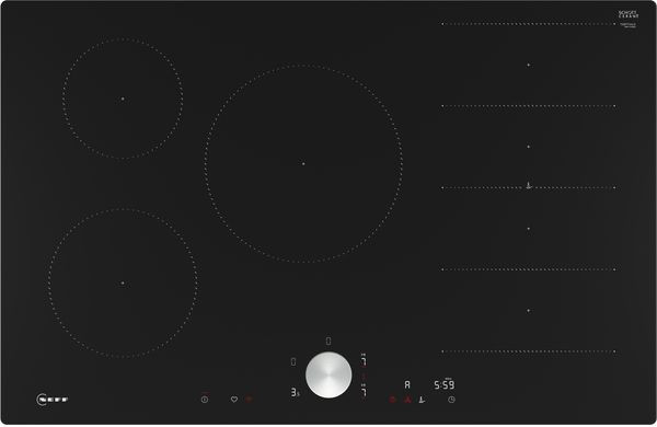 80 cm: Platz für 5 Töpfe oder Pfannen Flexibilität der Kochzonen Flexzone: Verwenden Sie Kochgeschirr beliebiger Form und Größe innerhalb der 40 cm langen Zone. Kochzone vorne links: 180 mm, 2 kW (maximale Leistung 3.1 kW) Kochzone hinten links: 145 mm, 1.6 kW (maximale Leistung 2.2 kW) Kochzone hinten: 240 mm, 2.5 kW (max. Leistung 3.7 kW) Kochzone hinten rechts: 200 mm, 210 mm, 2.2 kW (maximale Leistung 3.7 kW) Kochzone vorne rechts: 200 mm, 210 mm, 2.2 kW (maximale Leistung 3.7 kW) Benutzerfreundlichkeit Zweifarbiges Display (weiß/rot): leicht zu erkennen, welche Funktion aktiviert ist. Favourite Taste: Mit einer konfigurierbaren Taste direkt auf Lieblingsfunktionen zugreifen. 17 Leistungsstufen: Stellen Sie die Hitze mit 17 Leistungsstufen (9 Hauptstufen und 8 Zwischenstufen) präzise ein. Warmhalte-Funktion, wählbar über Favourite Taste/Home Connect App (voraussichtliche Verfügbarkeit in Q4/2024 über Software-Update für mit Home Connect verbundene Geräte): Warmhalten von Speisen bei voreingestellter niedriger Leistungsstufe. Switch Off Timer: schaltet die Kochzone am Ende der eingestellten Zeit aus (z. B. für gekochte Eier). Alternativ Wecker: Ein Signal ertönt am Ende der eingestellten Zeit (z. B. beim Pastakochen). Die Lautstärke der Signaltöne kann an die persönlichen Vorlieben und Bedürfnisse angepasst werden. Zeitersparnis und Effizienz Powerstufe für Töpfe: Mit 50 % mehr Leistung z. B. Wasser schneller zum Kochen bringen als auf höchster Leistungsstufe. Powerstufe für Pfannen, wählbar über Favourite Taste/Home Connect App (voraussichtliche Verfügbarkeit in Q4/2024 über Software-Update für mit Home Connect verbundene Geräte): Erhitzt Pfannen schneller als auf höchster normaler Leistungsstufe und schützt gleichzeitig die Pfannenbeschichtung. Die Kochzonen werden automatisch zusammengeschaltet oder getrennt auf Basis der Größe und Form des platzierten Kochgeschirrs. PowerTransfer: Wenn Sie einen Topf auf eine andere Kochzone stellen, übertragen Sie alle vorherigen Einstellungen durch einmaliges Bestätigen in die neue Zone. Intelligente Flex-Zone: ja. Beim Einschalten wählt das Kochfeld automatisch die Kochzone aus, auf die ein Kochgeschirr gestellt wurde. Beim Bewegen eines Topfes passen sich die Einstellungen sofort an und die Kochzone passt sich der Größe des Kochgeschirrs an. Quick Start Funktion: Beim Einschalten wählt das Kochfeld automatisch die Kochzone aus, auf dem im ausgeschaltetem Zustand Kochgeschirr aufgesetzt wurde. Restart Funktion: Im Falle von unbeabsichtigtem Ausschalten des Kochfeldes bleiben alle Einstellungen erhalten, wenn Sie innerhalb von 4 Sekunden wieder einschalten. Kochunterstützung 11 Bratbereiche: verhindert ein Anbrennen durch die automatische Temperaturregelung des Sensors. Kochassistent: Finden Sie einfach die richtige Temperatureinstellung für ein bestimmtes Gericht über die Home Connect-App. Konnektivität Home Connect Funktion (WLAN): Überprüfen Sie, ob das Kochfeld auch dann ausgeschaltet ist, wenn Sie nicht zu Hause sind, und suchen Sie in der Home Connect-App nach Rezepten oder zusätzlichen Funktionen. cookConnect System (mit passender Dunstabzugshaube): Aktiviert den Dunstabzug beim Kochen automatisch, dank der WiFi-Verbindung von Kochfeld und geeignetem Dunstabzug. Sensorlose Automatik: ja, nach Software-Update. Die Dunstabzugshaube passt die Leistungsstufe automatisch an, da das Kochfeld kontinuierlich Kochdaten liefert (mit passender Dunstabzugshaube und verbundenem Home Connect-Konto). Externer Trigger per MyButton: Öffnen Sie das intelligente Universum von Ihrem Kochfeld aus (Partnerservice erforderlich). Aktualisierbares Gerät (verfügbar