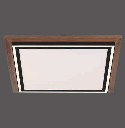 quadratische LED-Deckenleuchte, Holzdekor, dimmbar, Fernbedienung, CCT, Farbtemperatur von warmweiß bis neutralweiß, 2 Lichtquellen in Serienschaltung, 50 Watt, 2500 Lumen, IP20, L:53,4cm B:53,4cm H:6,2cm, Zusatz-Art.-Nr.: 100.526.29