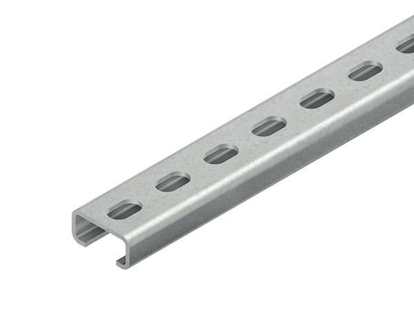 Ankerschiene Modell 2971, C-Profil ähnlich DIN EN 60715, gelocht. Passende Bügelschellen (B... und BK...). In persönlichen Gefährdungsbereichen ist die Schutzkappe SKC 70 anzuordnen. Um ein problemloses Aufsetzen der Schutzkappe zu gewährleisten, ist ein Abstand von mind. 30 mm zum Profilende freizuhalten. Abmessungen (ca. Maße) Höhe H x Breite B x Materialstärke t : 15 x 30 x 2 mm Schlitzweite : 16 mm Profillochung : 9 x 15 mm mittiger Abstand : 25 mm Lieferlänge L : 2000 mm Werkstoff : Stahl, tauchfeuerverzinkt nach DIN EN ISO 1461