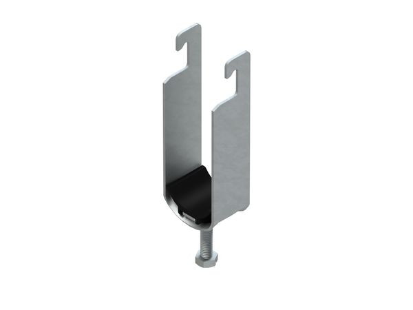 | Kurzbeschreibung | Universal-Bügelschelle, für 2 Kabel, Ø 14-18 mm, Schlitzweite 18-22 mm, Stahl, feuerverzinkt DIN EN ISO 1461, mit Kunststoffdruckwanne |