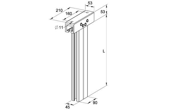 Kurzbeschreibung GFK-Hängestiel, Doppel-C-Profil 90x45x700 mm, zul. F Zug 2x1,5 kN, Polyester glasfaserverstärkt, pultrudiert, RAL 7032, kieselgrau