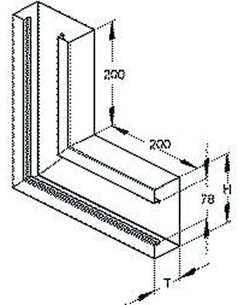 GK-Vertikaleck 90°, einzügig asymmetrisch, 170x61 mm bandverzinkt DIN EN 10346, De-Öffn. 78 mm