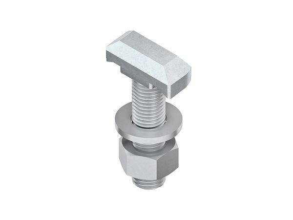Hakenkopfschraube mit Sechskantmutter und Unterlegscheibe, an jeder Stelle im Profil einsetzbar. Verwendung für : Ankerschienen 2985, 2986, 2988, 2990 mit 18 mm Schlitzweite Abmessungen (ca. Maße) Kopflänge : 35 mm Kopfbreite : 17 mm Kopfhöhe : 10,5 mm Gewinde : M 16 Länge L : 50 mm Festigkeitsklasse : 4.6 Werkstoff : Stahl, galvanisch verzinkt nach DIN EN ISO 4042, blaupassiviert