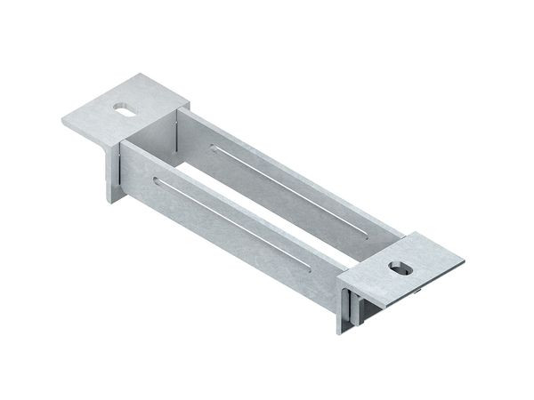 Kopfplatten-Adapter, Stecksystem bestehend aus zwei Winkel 60 x 60 x 6 mm und zwei Adapterleisten mit Aussparung zur Aufnahme der Hängestielkopfplatte, zur Vergrößerung des Achsabstandes der Dübel unter Berücksichtigung der Kennwerte der Dübelzulassungen sowie zur Erhöhung der Tragfähigkeit der HI 80/... Hängestiele, zur Montage an waagerechten Decken. für Hängestiel : HI 80/... für Profil und Kopfplatte : I 80/... nach DIN 1025 mit KI 80 Abmessungen (ca. Maße) Adapter L x B : 390 x 95 mm Befestigungslochung im Winkel : 14 x 24 mm mittiger Abstand : 330 mm Aussparung Adapterleiste : 190 x 7,5 mm Werkstoff : Stahl, tauchfeuerverzinkt nach DIN EN ISO 1461