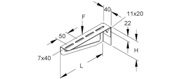 Hängestiel- und Wandausleger, mittelschwer, zur Wand- und Hängestielmontage, einschließlich anteilmäßigen Befestigungszubehör. Die Tragfähigkeitsangaben gelten nur bei ausreichender Verankerung mit dem tragenden Untergrund bzw. bei vorschriftsmäßigen Montagen an Hängestielen. VDE zertifiziert! Hergestellt mit 60% CO2-reduziertem Stahl! Abmessungen (ca. Maße) Auflagehöhe H : 60 mm Auflagelänge L : 110 mm Tragfähigkeit F bei L/2 : 1,2 kN im System geprüft Werkstoff Ausleger : Stahl, bandverzinkt nach DIN EN 10346