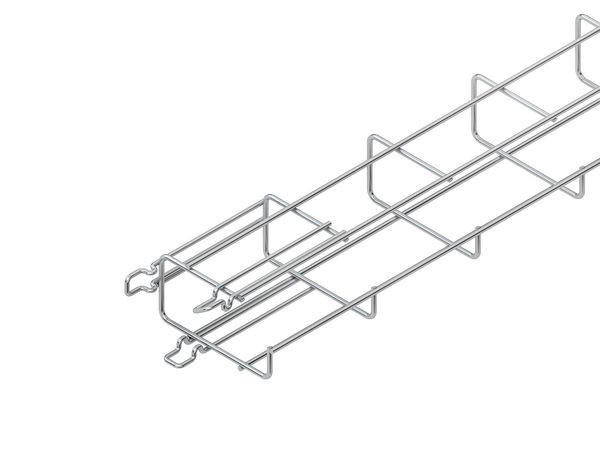 Gitterrinne nach DIN EN 61537, G-förmig, aus Stahldrähten, punktgeschweißt, zur Schnellbefestigung mit angeschweißten Stoßstellenverbindern in den Seiten und im Boden. Abmessungen (ca. Maße) Nennmaße Höhe H (innen) x Breite B (innen) : 50 x 100 mm obere Schenkelbreite B1 (Innenmaß) : 77 mm Längsdraht-Ø : 3,9 mm Bodenlängsdrahtabstand : 50 mm Seitenlängsdrahtabstand : 41 mm Querdraht-Ø : 3,9 mm Querdrahtabstand : 100 mm Lieferlänge L : 3000 mm Nutzbarer Querschnitt : 4900 mm² Werkstoff : Edelstahl, Werkstoff Nr. 1.4301, AISI 304