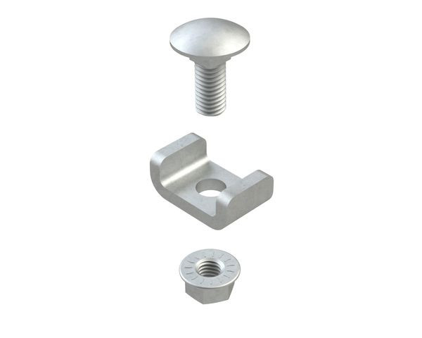 Gitterrinnenverbinder, einschließlich Flachrundkopfschraube nach DIN 603 und verzahnter Flanschmutter nach DIN EN 1661, zur Erstellung von durchlaufenden Gitterrinnen und zur variablen Herstellung von Formstücken. Für eine optimale Belastung der Gitterrinne MTS... beachten Sie hierzu bitte die Angaben zu Anzahl sowie die genaue Positionierung der Verbinder. Verwendbar für : Gitterrinnen MTS... mit einem Draht-Ø 6 mm Werkstoff : Stahl, galvanisch verzinkt nach DIN EN ISO 19598, blaupassiviert
