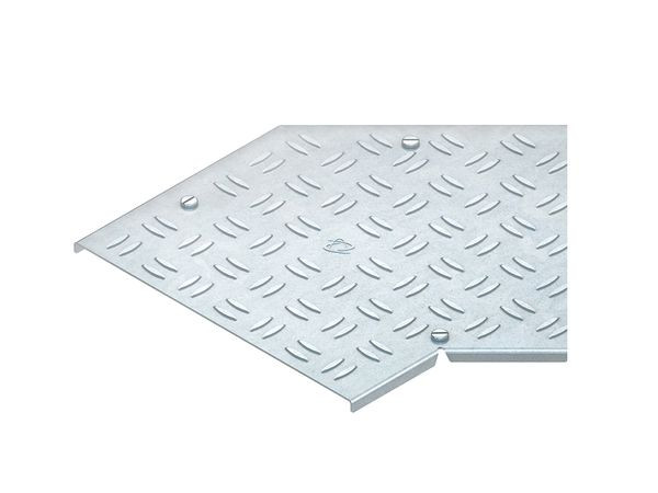 | Kurzbeschreibung | Deckel für Bogen 45° für KR, rutschsicher, Breite 405 mm, t=3,25 mm, Stahl, bandverzinkt DIN EN 10346, mit Drehriegel |