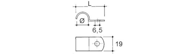 E-Klips, Rohrschelle, einlaschig, zur Befestigung von Kabel und Rohren an Wand und Decke. Abmessungen (ca. Maße) Breite B x Länge L : 19 x 48 mm Befestigungslochung : Ø 6,5 mm für Rohr-Ø : 25 mm Werkstoff : Stahl, mechanisch verzinkt/passiviert nach DIN EN ISO 9227
