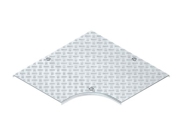 | Kurzbeschreibung | Deckel für Bogen 90° für KR, Breite 605 mm, t=6,0 mm, mit Drehriegel, Stahl, bandverzinkt DIN EN 10346, mit Alublech-Auflage, rutschsicher |
