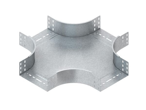 Kreuzung, mit ungelochten Seitenholmen, mit Verbinderlochung für den Anschluss, für Kabelrinnen, zur Herstellung von horizontalen 90° Kreuzungen, mit integrierten Stoßstellenverbindern, einschließlich anteilmäßigem Befestigungszubehör. für Kabelrinnen : 85 mm Kantenhöhe Abmessungen (ca. Maße) innen H x B : 85 x 102 mm Innenholmradius R : 138 mm Werkstoff : Stahl, bandverzinkt nach DIN EN 10346