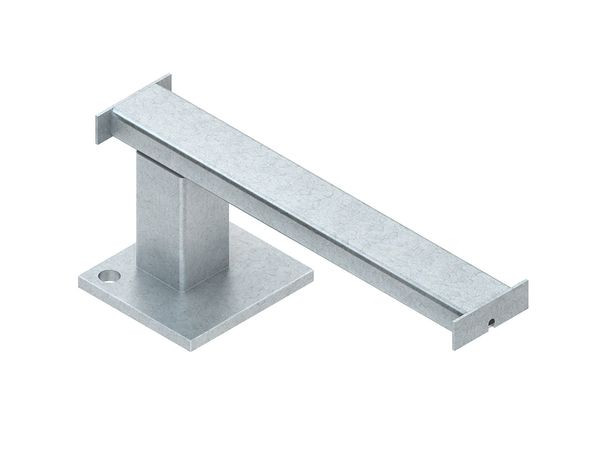 Stütze, asymmetrisch, geschlossen, ungelocht, zur Verlegung von Kabelrinnen über bodennah verlegte Rohre der begehbaren Kabelrinnen, bestehend aus einem horizontalen Stahlrohr und einem vertikal Stahlrohr sowie einer rechteckigen Bodenplatte mit Befestigungslochungen. Verwendbar für : begehbare Kabelrinnen Abmessungen (ca. Maße) Auflagehöhe H : 108 mm Auflagebreite B : 392 mm asym. horizontales Stahlrohr Maße A : 18 mm asym. horizontales Stahlrohr Maße C : 334 mm horizontales Stahlrohr nach DIN EN 10219-2 : 40 x 20 x 2 mm vertikales Stahlrohr nach DIN EN 10219-2 : 40 x 40 x 2 mm Werkstoff : Stahl, galvanisch verzinkt nach DIN EN ISO 19598, blaupassiviert