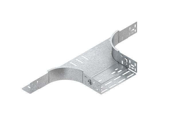 Anbau T-Stück, für Kabelrinnen, steckbar mit der CITO Kabelrinne RLVC..., zur kostengünstigen Herstellung von 90° T-Abgängen und Kreuzungen, breitenabhängig in der Hauptrichtung, mit Rastschlaufen, zusätzlichen Verbinderlochungen, integriertem Stoßstellenverbinder und anteilmäßigem Befestigungszubehör. Zur Verwendung im Funktionserhalt bitte Zusatzvorschriften beachten! Verwendbar für : CITO Kabelrinne RLVC... und Kabelrinnen mit 60 mm Kantenhöhe Abmessungen (ca. Maße) H x B (lichtes InnenMaße) : 60 x 102 mm Innenholmradius R : 99 mm Ausklinkung der Kabelrinne : 200 mm + B Werkstoff : Stahl, bandverzinkt nach DIN EN 10346