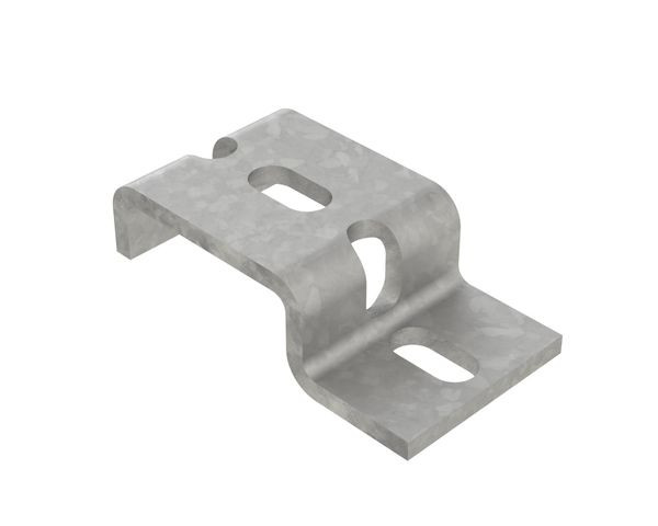 Schienen-Auflagebügel, mit Befestigungslochungen, zur T-förmigen / kreuzenden Anbindung der Ankerschienen/Profilschienen im 90° Winkel zu Gestellen, Abhängungen und Kabelflächenrosten, Befestigungszubehör muss, je nach Anwendungsfall, gesondert bestellt werden. Verwendung für : Ankerschienen/Profilschienen 2996Z..., 2996ZD... und 2997Z... Abmessungen (ca. Maße) Höhe H : 22 mm Breite B : 40 mm Länge L : 74,5 mm Materialstärke t : 4 mm Befestigungslochungen : 9 x 18 mm Werkstoff : Stahl, tauchfeuerverzinkt nach DIN EN ISO 1461