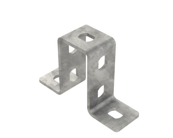 Schienen-Befestigungsbügel, doppelt, mit Befestigungslochungen, zur kreuzenden Verbindung der Ankerschienen/Profilschienen 2996ZD... im 90° Winkel zu Gestellen, Abhängungen und Kabelflächenrosten, Befestigungszubehör muss, je nach Anwendungsfall, gesondert bestellt werden. Verwendung für : Ankerschienen/Profilschienen 2996Z..., 2996ZD... und 2997Z... Abmessungen (ca. Maße) Höhe H : 80 mm Breite B : 40 mm Länge L : 132 mm Materialstärke t : 4 mm Befestigungslochungen : 14 x 18 mm Werkstoff : Stahl, tauchfeuerverzinkt nach DIN EN ISO 1461