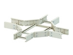 GFK-Kreuzung, pultrudiert, mit ungelochten Seitenholmen, jedoch mit Verbinderlochungen sowie mit nach oben offenen ungelochten Sprossen aus C-Profil mit ca. 17 mm Schlitzweite, zur Herstellung von horizontalen 90° Kreuzungen, anteilmäßiges Befestigungszubehör bitte gesondert bestellen, halogenfrei. Bei der Montage ist auf Folgendes zu achten: - Bei der Verbindung des Formstückes ist eine Montagedistanz von ca. 30 mm zu berücksichtigen. - Das Formstück muss an jedem Kabelleiterzugang mit Auslegern unterstützt werden. - Ist der Radius > 250 mm und/oder die Breite > 400 mm, sollte eine zusätzliche mittlere Unterstützung vorgesehen werden. - Um eine ordnungsgemäße Montage zu gewährleisten, müssen die Verbinder an jedem Kabelleiterzugang mit 4 FKM 6X20 E4 verschraubt sein. GFK-Kreuzung mit Verbindungslaschen (1) aus Edelstahl auf Anfrage. GFK-Kreuzung mit ungelochten Sprossen zur Realisierung der Radien R600 und R900 auf Anfrage. Die Stoßstellenverbinder ULGH 150/150 und ULIH 150 E4 sind nicht im Lieferumfang enthalten (bitte gesondert bestellen). Verwendung für : GFK-Kabelleiter UL 150... GFK-Kabelleiter ULL 150... Abmessungen (ca. Maße) H x B : 150 x 400 mm Länge in Hauptrichtung : 690 mm + B Länge in Abgangsrichtung : 345 mm + B Radius R : 250 mm Werkstoff : UP-GF (glasfaserverstärkter Polyester) Werkstoff Schrauben : Edelstahl, Werkstoff Nr. 1.4404, AISI 316L Farbton : kieselgrau RAL : 7032 (ähnlich)