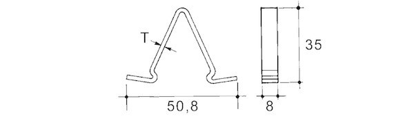 E-Klips, Lochklammer, für Leuchtenabhängungen mittels Stahlseile oder Ketten. Abmessungen (ca. Maße) Breite x Höhe x Länge : 50,8 x 35 x 8 mm Materialstärke t : 1 mm Werkstoff : Stahl, galvanisch verzinkt/chromatiert nach DIN 50021