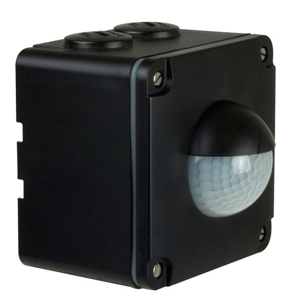 Bewegungsmelder für AP Wandmontage. Bewegungsmelder mit erhöhtem Spritzwasserschutz für Wandmontage von 1,0 bis 3,0 m möglich dank horizontalem und vertikalem Erfassungsbereich. Ideal für Nasszellen und Außenanwendungen. Externer Schalter (ON). Farbausführung: schwarz
