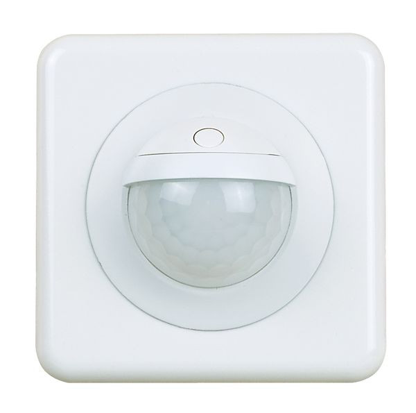 Präsenzmelder für UP Wandmontage mit integriertem Taster für manuelles Schalten. Farbausführung: weiß