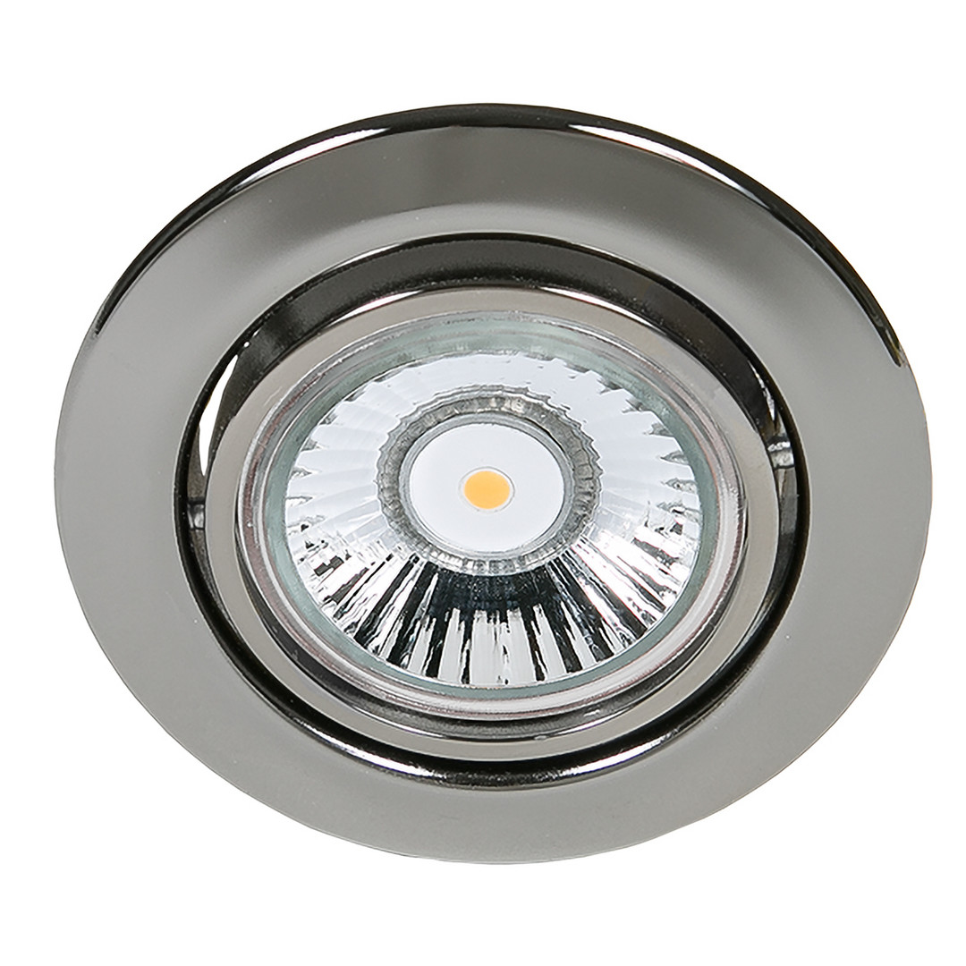 Schwenkbar ca. 20°, Bestückung mit Niedervoltlampen bis max. 50 Watt, Spannung 12 Volt. Material: Stahl, Innenring Messing. Oberfläche: pulverbeschichtet oder galvanisiert.