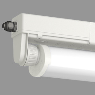 Explosionsgeschützte, schwadensichere Kunstoffleuchte mit LED-Bestückung. Einsetzbar in industriellen Anwendungen. Witterungsbeständiges Leuchtengehäuse aus duroplastischem Kunstoff, ähnlich RAL 9010. Einsetzbar im Innen- und Außenbereich gemäß Schutzart IP 65 und IP 66. Lampen- und Geräteraum thermisch voneinander getrennt. Kurzes Dichtungssystem bestehend aus alterungsbeständigem formstabilem Silikon-/Synthese-Kautschuk. Mit Schutzrohr-Reflektor aus PC Tropal® (bruchsicher) mit innenliegendem Aluminiumreflektor (MIRO-SILVER®). Leuchte montage- und anschlussfertig. Eingebautes Betriebsgerät 230 V AC/DC 1-lampig. Eine stirnseitige EEx-Kabelverschraubung M20 mit Staubschutzstopfen. Einzel- oder Lichtbandmontage. Deckenbefestigung durch zwei Bügelschellen aus Kunststoff, variabler Befestigungsabstand. (Montage bei Zone 22 ohne Mittenkaschierung)