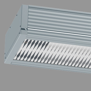 Leuchte für Deckenanbau und Deckeneinbau aus Aluminium mit LED-Bestückung. Einsetzbar in U-Bahnhöfen, Fußgängerunterführungen, Personentunnel, Passerellen, Parkhäusern, Schwimmbädern, Sporthallen, Verkehrsflächen und unter Überdachungen. Silberfarbig eloxiertes Aluminium-Profilgehäuse. Abklappbare Abschlussscheibe. Einsetzbar im Innen- und Außenbereich gemäß Schutzart IP 65. Schutzklasse II. LED-Einheit für einfachen LED-Wechsel (easy eXchange LED) aus PMMA Transopal® (schlagzäh) in 10° Schritten schwenkbar mit verpolungssicherem Anschlussstecker. Abschlussscheibe aus PMMA (schlagzäh) oder PC (bruchsicher) glasklar mit Dekor-Siebdruck. Innenliegender Aluminiumreflektor (MIRO-SILVER®). Eingebautes Betriebsgerät, Versorgungsspannung 230 V AC/DC. Durchgangsverdrahtung 4 x 1,5 mm². Anschlussfertig über zwei rückwärtige Kabelmembrane. 2 kV Transientenfilter. Montage an zwei rückwärtigen, verdeckten Befestigungsbohrungen.
