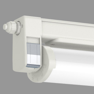 Decken- und Wandanbauleuchte für HACCP/IFS Anwendungen aus Kunststoff mit LED-Bestückung. Geeignet für Produktionsstätten und Zulieferbetrieben der Lebensmittel- und Getränkeindustrie. Säure-, laugen- und treibstofffestes Leuchtengehäuse aus glasfaserverstärktem Kunststoff, ähnlich RAL 9010. Einsetzbar im Innen- und Außenbereich gemäß Schutzart IP 65, IP 66 und IP 67. Aufgrund hoher Schutzart IP 69K geeignet für intensive Reinigungsprozesse mit Hochdruckreinigern. Lampen- und Geräteraum thermisch getrennt. Kurzes Dichtungssystem bestehend aus alterungsbeständigem, formstabilem Silikon-/Synthese-Kautschuk. Schwenkbarer Schutzrohrreflektor aus PMMA Transopal® (schlagzäh) oder PC Tropal® (bruchsicher), mit innenliegendem Aluminiumreflektor (MIRO-SILVER®). Arretierung des Schutzrohrreflektors in 10°-Schritten möglich. Leuchte montage- und anschlussfertig. Eingebautes Betriebsgerät 230 V AC/DC. Zwei Anschlussdeckel, zwei stirnseitige Kabelverschraubungen M20. Einzel- oder Lichtbandmontage. Deckenbefestigung durch zwei Befestigungsklammern aus Edelstahl, variabler Befestigungsabstand. Unverlierbare Gehäusedeckel.