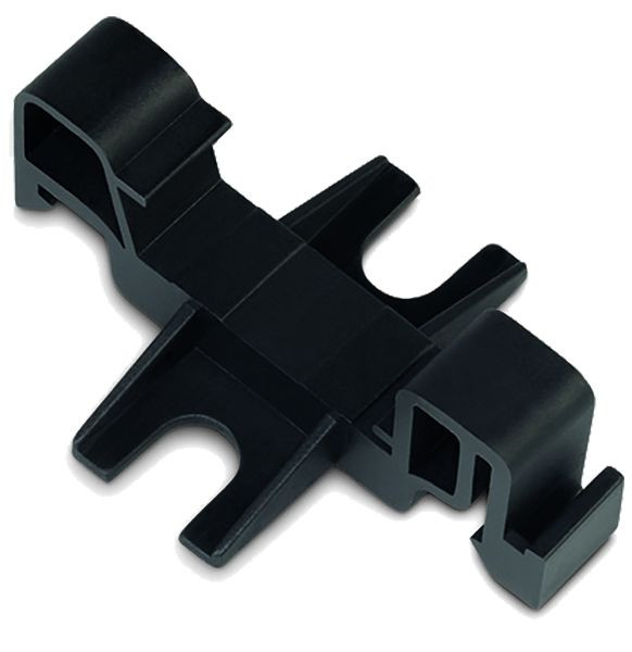 Montageklemme zur platzsparenden Befestigung von bis zu drei Klappwandlern vom Typ RM27 auf Hutschiene