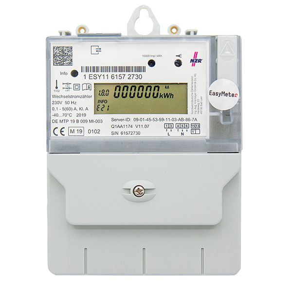 Q1A, 5(60)A, Bezug und Lieferung, mit D0-Ausgang, 1-Tarif, MID Elektronischer Wechselstromzähler für Direktanschluss, für 2-Leiternetze, mit D0-Ausgang, 1-Tarif, für beide Energierichtungen MID konformitätsbewertet, für Zählerkreuzmontage, Funktionalität nach FNN-Lastenheft, EDL V1.2, erweiterbar zum Intelligenten Messsystem, manipulationssicher, resistent gegen elektromagnetische Störfelder (EMV) z.B. bei starken Permanentmagneten, resistent gegen Überspannung z.B. bei Beschuss mit handelsüblichen Elektroschockern. Sehr gut geeignet für Photovoltaikanlagen. Das spezielle Messverfahren ermöglicht eine frequenzunabhängige Leistungsmessung bis >150kHz AC mit einer Genauigkeit < 0,2%. Dadurch wird eine exakte Ermittlung von elektronischen Verbrauchern und Einspeiseanlagen, z.B. DC/AC-Konvertern von PV-Anlagen, sichergestellt. Sehr geringe Verluste und damit niedrige Eigenerwärmung. Rollierende Infozeile, Inhalte teils konfigurierbar über MSB-Schnittstelle. Bedienung für Letztverbraucher mittels optischem Aufruftaster mit PIN-Schutz und Tacho-Nullstellung. Momentanleistung (W).Historische Energiewerte (kWh) für Tag, Woche, Monat, Jahr, Speichertiefe über zwei Jahre. Bidirektionale MSB-Schnittstelle (D0)Protokoll nach SML 1.04. Funktionalität nach FNN Lastenheft EDL V1.2.Jede Sekunde Übertragung der ID-Nr., Zählerstände, Phasen- und Summenleistung. Unidirektionale INFO-Schnittstelle, Protokoll nach SML 1.04. Funktionalität nach FNN Lastenheft EDL V1.2. Erweiterbar durch Aufsteckmodule. Als Erweiterung zum intelligenten Messsystem nach dem MsbG. Für sonstige Kommunikation, Zusatzfunktionen, usw.. Spannungsversorgung der Module über Klemmen 7/11. Technische Daten System 4-Leiter auch als 2-Leiter Wechselstromzähler zugelassen, Spannung (U) 1x230VStrom (I) 5(60) A, Frequenz (f) 50 Hz, Genauigkeit (Wirk) A, Eigenverbrauch (Ue) < 0,6 VA pro Phase (<2,5VA), Eigenverbrauch (Ie) < 7,5mW bei I <1,1W bei 60A, Temperaturbereich (Tb) -25 bis +55° C, Schutzklasse (Gehäuse) IP 54, Gewicht ca. 0,55 kg, Abmessungen (B x H x T) 177 x 157 x 50 mm, Typ: Q1A, (D0, 1-Tarif, MID) 1 x 230 V, 5 (60) A, Artikel Nr:: 63321115 NZR NORDWESTDEUTSCHE ZÄHLERREVISION Ing. Aug. Knemeyer GmbH & Co. KG, Heideweg 33, D - 49196 Bad Laer