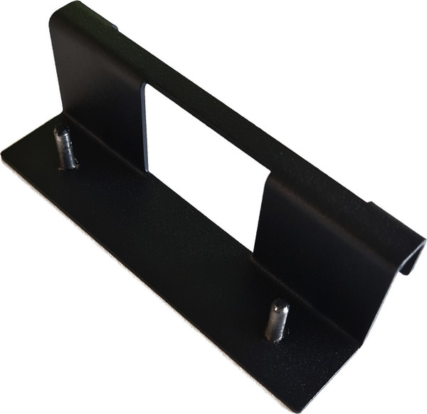 Halteblech für NP-FS-PROTECT-PTOOL (Telent Crimp-Spleißschutzpresse) in Edelstahl, schwarz pulverbeschichtet. Anbringung an Rastnasen des NP-CFS100 (Fusionsspleißgerät).