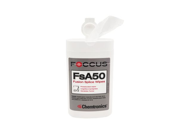 Die Chemtronics Nassreinigungstücher FSA-50 sind die praktisch verpackten Tücher für eine Vielzahl von Anwendungen. Sie sind als vorgetränkte Tücher mit einer wässrigen Reinigungslösung erhältlich, weich, fusselarm und perfekt für die Reinigung kleiner Flächen. Besonders gut eignen sie sich für die Reinigung von Glasfasern vor dem Fusionsspleißvorgang oder der Steckerkonfektionierung.