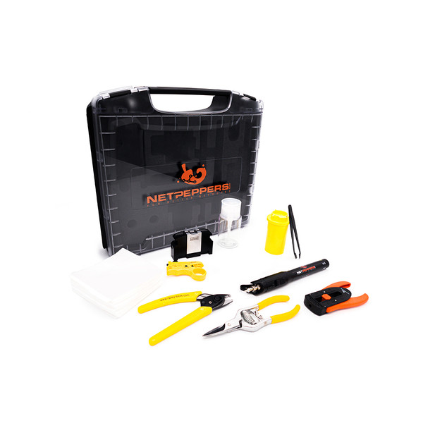 Der LWL-Werkzeugkoffer vereint alle Schritte zur Verarbeitung von Glasfasern in einem kompakten Set. Zu Abisolierung des Außenmantels von Drop- oder Mikro-/Mini-Einblaskabeln steht der Bündeladerschneider Miller MB06-7000 für Außenmanteldicken bis 6,4 mm und Längsschlitzfunktion zur Verfügung. Zur Abisolierung von 3 mm Schutzmantel und 900 ?m Sekundärcoating kommt eine bewährte Miller-Zange zum Einsatz. Zum Abmanteln des 250 ?m Primärcoatings kommt der NetPeppers OFS31 LWL-Präzisions-Abisolierer zum Einsatz. Neben einer Schere zum Entfernen des Kevlar-Geflechts finden sich auch Tücher und ein Alkohol-Druckspender im Lieferumfang, um die Faser vor dem Cleave-Vorgang zu reinigen. Für Sicherheit während der Verarbeitung sorgen eine Pinzette und ein endverschließbarer Abwurfbehälter für Faserreste. Am Ende des Konfektionierungsvorgangs kann die Installation mittels der VLP50 sichtbaren Laserlichtquelle auf Fehler geprüft werden, nachdem der fertige Fusionsspleiß mit Crimpspleißschutz und der enthaltenen TELENT-Spleißschutzpresse geschützt wurde.