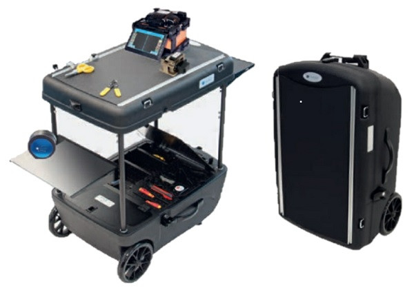 Für den Transport kommt das hochwertige System "Comfortsplice" zum Einsatz. Es beherbergt alle, im Set enthaltenen, Werkzeuge und Geräte. Bei Bedarf kann dieser Rollkoffer schnell zu einer mobilen Arbeitsstation mit einer großzügigen Arbeitsplatte in 85 cm Höhe umgebaut werden.
